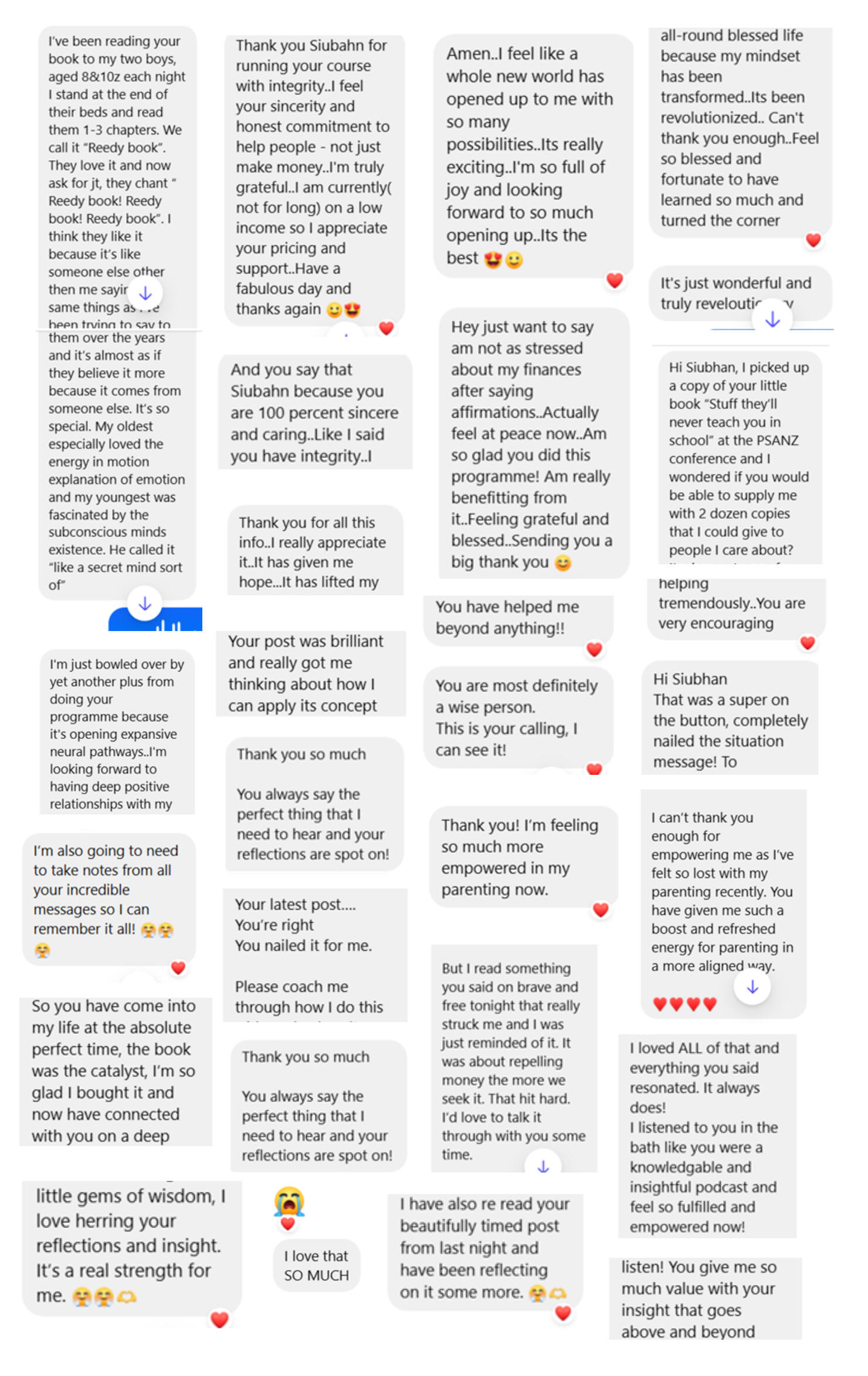 "Hey Siubhan just want to say am not as stressed about my finances, I actually feel at peace now. I'm so glad you did this programme! Am really benefitting from it. Feeling grateful and blessed. Sending you a big thank you.